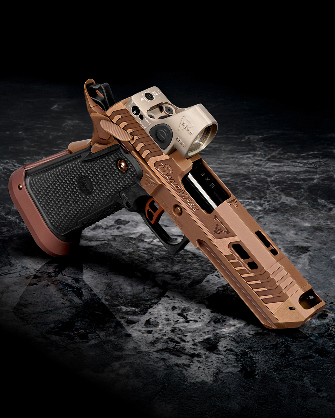 - Optika: Presný, ultra-nízky výrez pre kolimátor Trijicon RMR/SRO.
